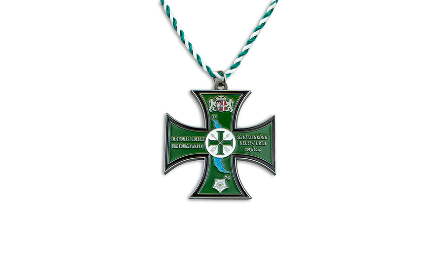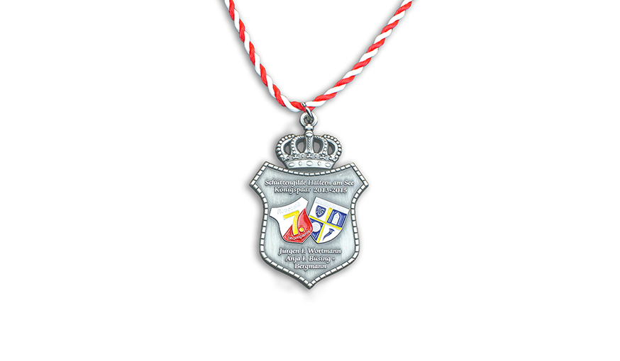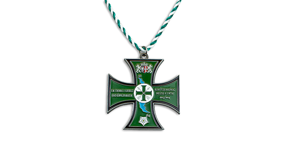 Schützenorden können in geprägter oder Druckguss Ausführung mit oder ohne Farbeinlegung, mit Kordel oder Band gefertigt werden.