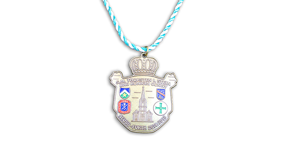 Schützenorden können in geprägter oder Druckguss Ausführung mit oder ohne Farbeinlegung, mit Kordel oder Band gefertigt werden.